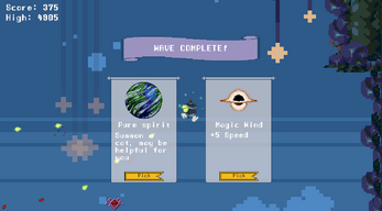 - Kết thúc wave player được chọn một nâng cấp. (Tăng chỉ số, Tăng số đường đạn, Triệu hồi hỗ trợ,…)